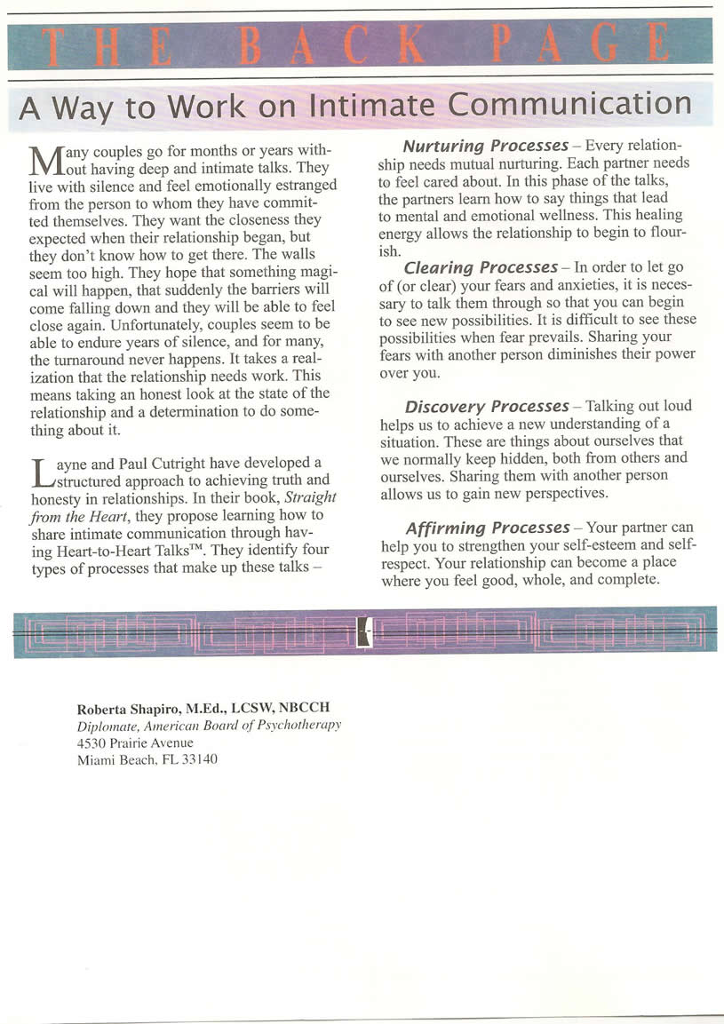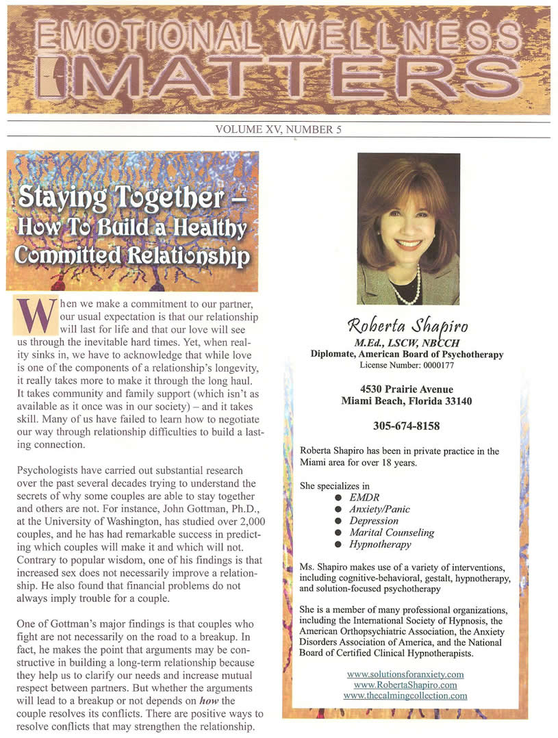 Volume XV, Number 5, Staying Together - How to Build a Healthy Committed Relationship: