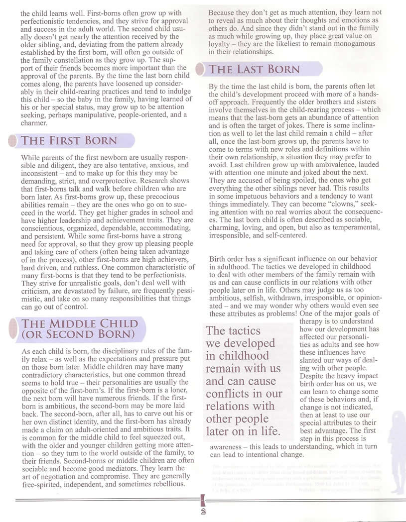 Volume XIII, Number 2, Birth Order - The Influence of Birth Order on Our Behavior and Relationships: